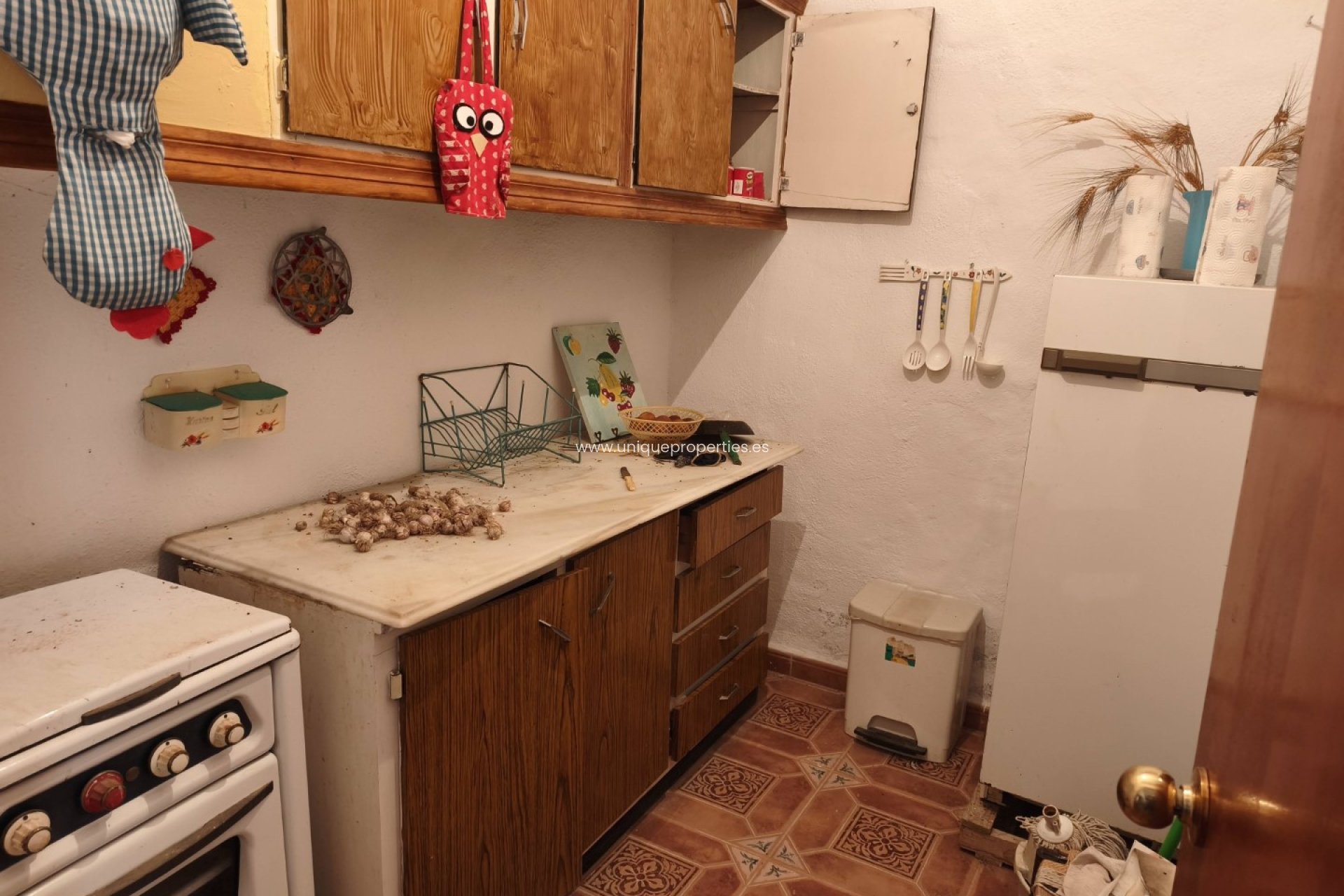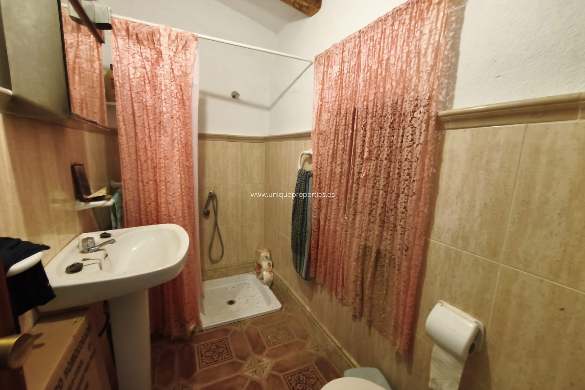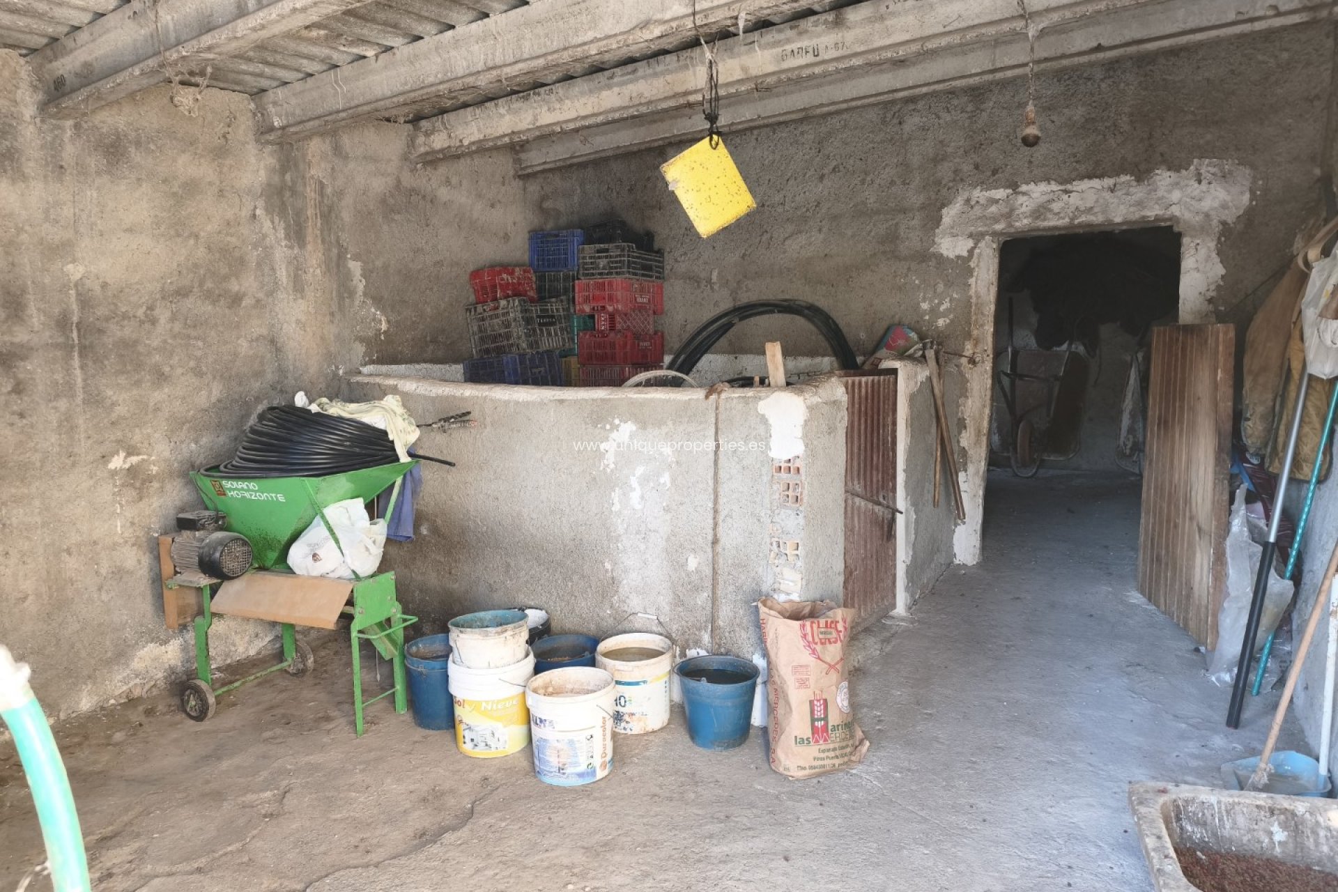 El cortijo se distribuye en un acogedor comedor con chimenea, que aporta calidez al hogar. A la derecha se encuentra la cocina, completamente amueblada, junto a un baño completo. Frente al salón hay un dormitorio amplio y luminoso. Junto a la vivienda principal existen varias estancias actualmente destinadas a animales, con gran potencial para ampliar la casa, añadir más habitaciones o aumentar la superficie habitable.